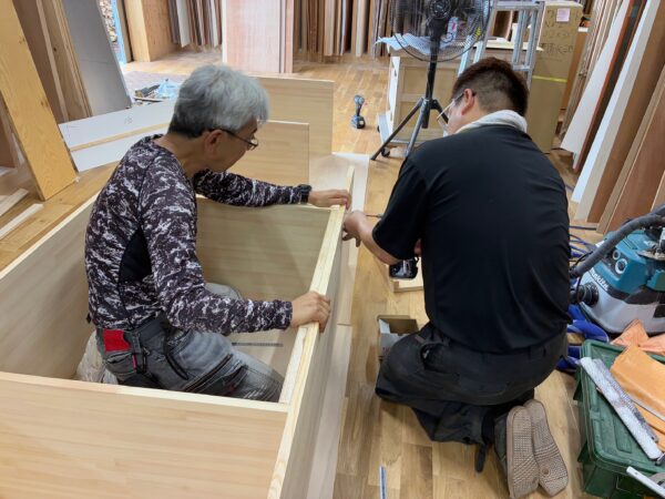 ベテラン社員大工さんと若手が一緒にモノづくり