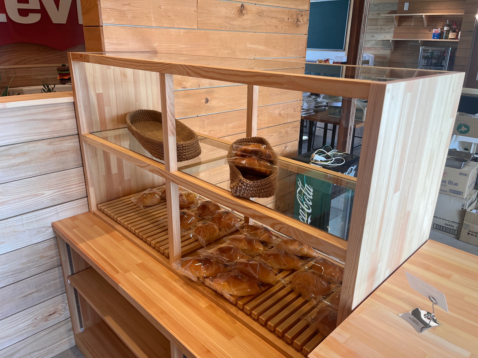COUNTRY MARKET(カントリーマーケット)様 レジカウンター&パンショーケース製作工事|制作・施工事例|有限会社大波建具製作所
